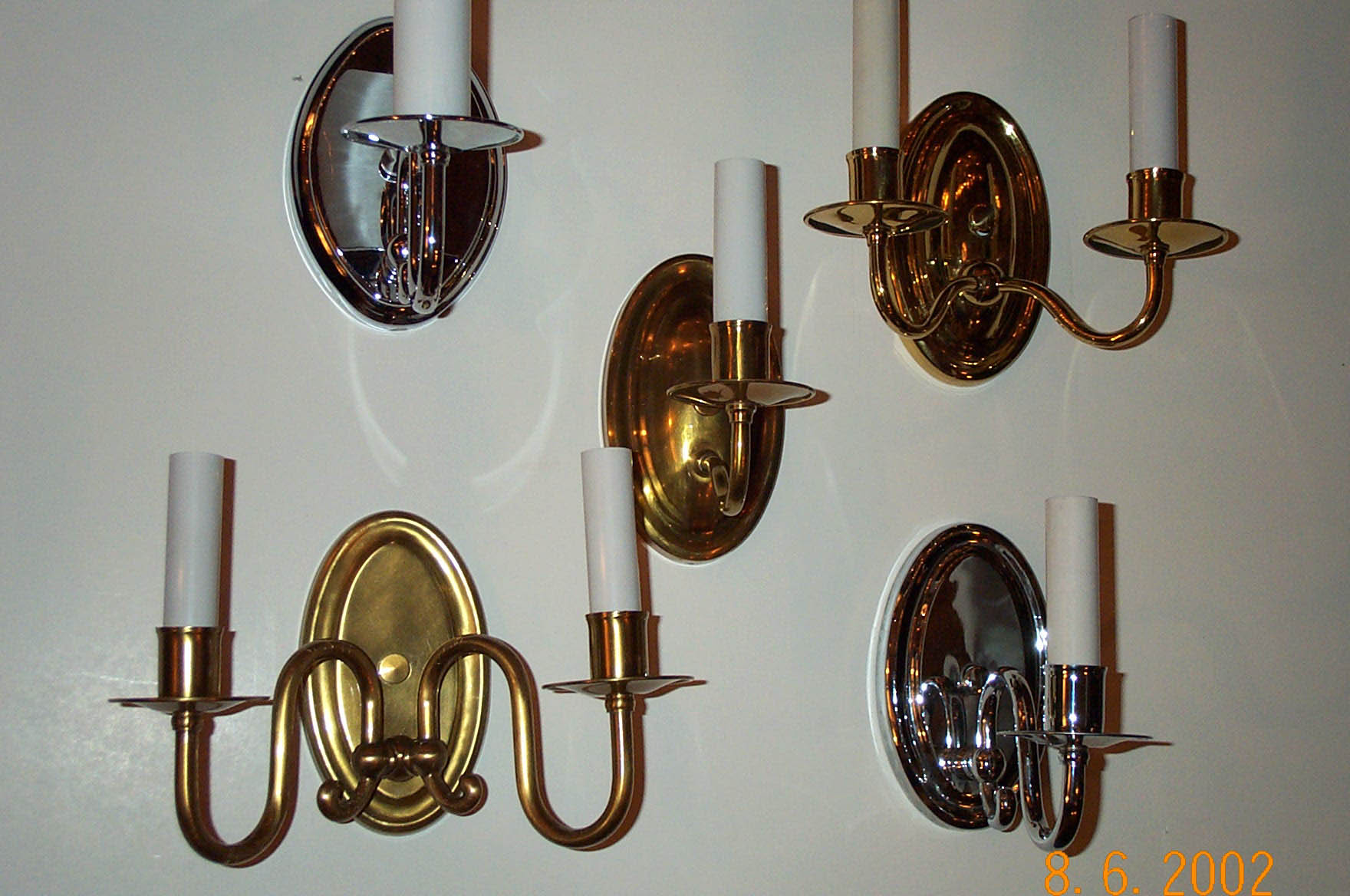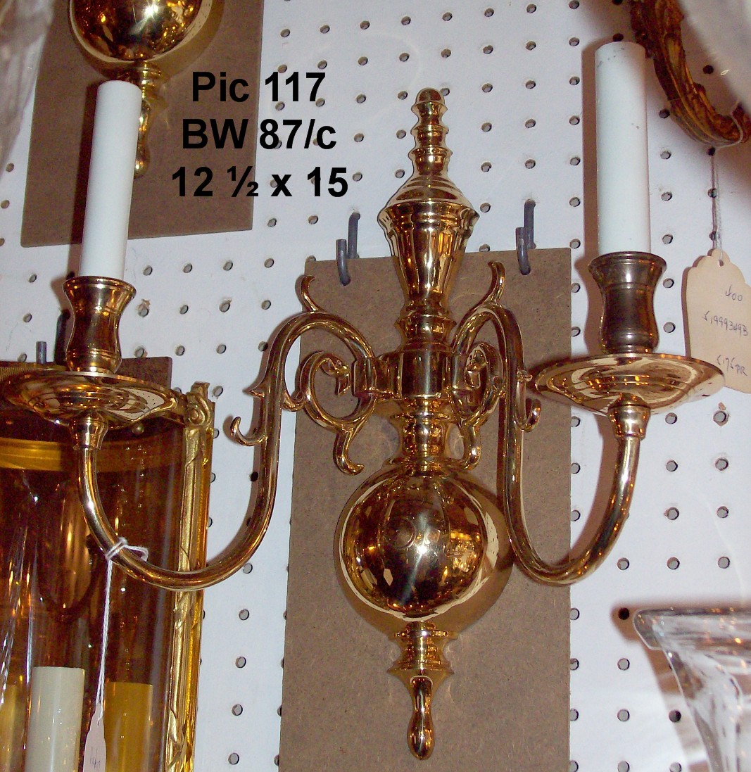 We have many styles including Chinoisserie, pewter, brass, as well as a large variety of antique crystal, bronze, Tole and mirrored sconces. Our styles include LXV, LXVI, Roccoco, Williamsburg, traditional, and more. A variety of sconces in crystal, painted Tole, brass, chrome, wrought iron, mirror, etc that are manufactured in our shop: