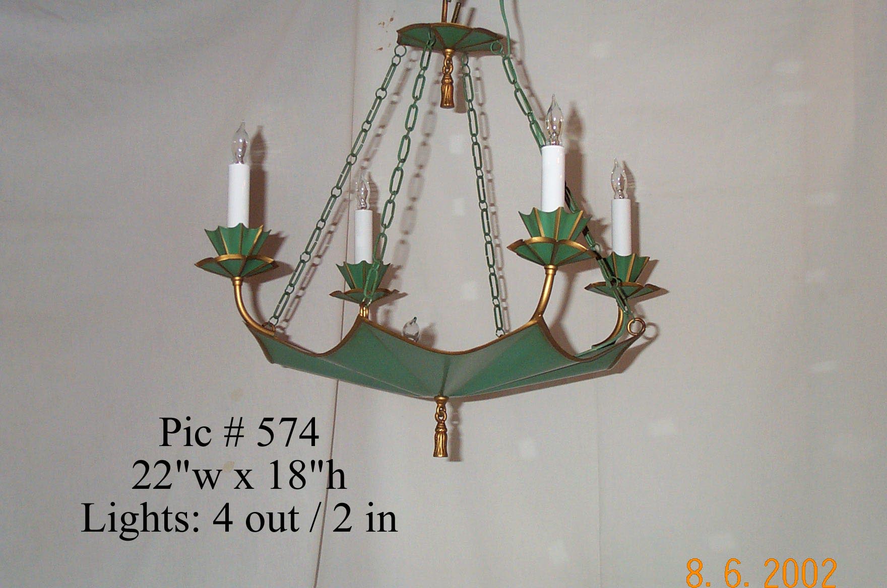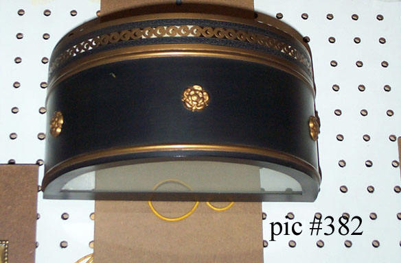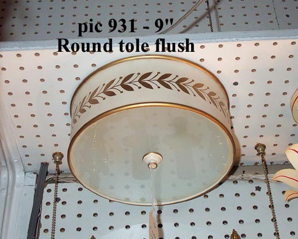 We manufacture a variety of custom painted Tole pieces. Hanging, flush mounted or sconces. Custom sizing and color are available as well. (Take a look at our Sconces Products page for more options)