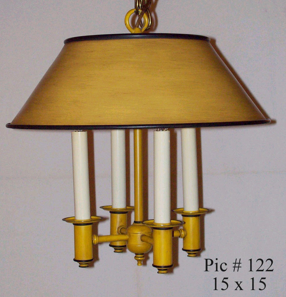 # 122 - 4 Lt Tole w/ Shade # 124 - 5 Lt Tole w/ Bouillotte Shade 15 x 15 17w x 18h (other styles avail)