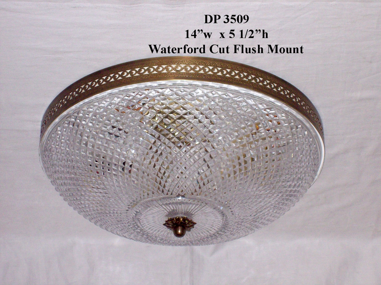 Custom crystal cut flush mounts are available in 8, 10 or 12" d.